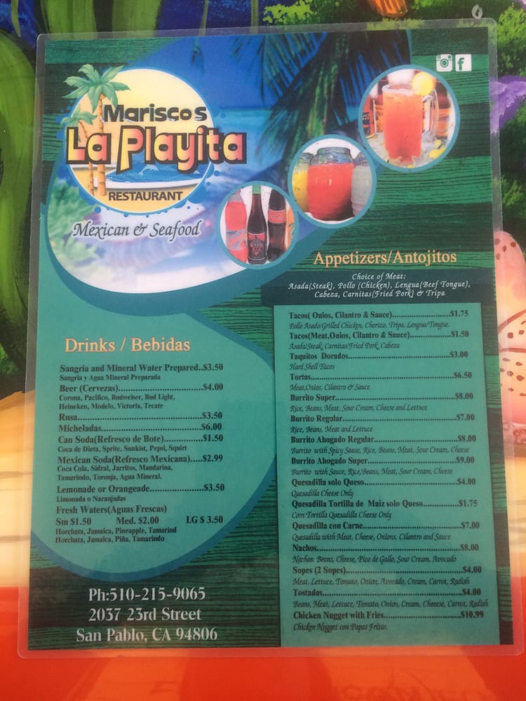 Mariscos La Playita, a Mexican seafood restaurant located in San Pablo, CA, offers a diverse menu with options for everyone. The restaurant provides various utilities such as takeout, reservations, delivery, and accepts credit cards and Apple Pay. With a casual ambiance and moderate noise level, it is suitable for groups, families, and brunch goers. The establishment offers street and private lot parking, waiter service, beer and wine options, TV, gender-neutral restrooms, outdoor seating, catering services, Wi-Fi, drive-thru, and even allows dogs. The menu features authentic Mexican seafood dishes prepared with fresh ingredients and served with care. Whether you're craving ceviche, shrimp tacos, or a seafood cocktail, Mariscos La Playita has something to satisfy your craving for delicious and flavorful seafood.